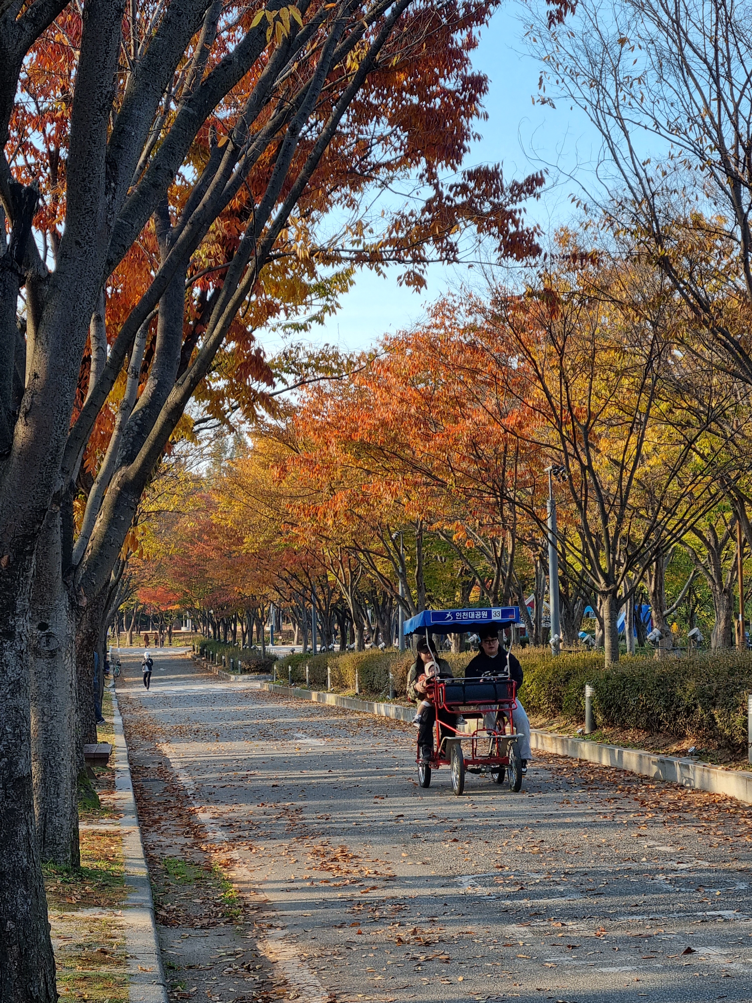서창동의 볼일을 마치고 돌아오는 길, 문득 올 가을에는 인천대공원에 들르지 못했음이 떠올랐다. 급작스레 스며든 아쉬움에 이끌려, 남은 시간의 자투리를 엮어 전철에 몸을 실었다. 열차 문이 열리고 쏟아져 나오는 사람들의 면면에서는 오후의 평화로운 기운이 읽혔다. 친구들과 도란도란, 혹은 가족의 손을 잡고, 저마다 단풍과 건강을 좇아 온 사람들. 그들의 얼굴 위로 비치는 환한 미소들이 나를 감싸는 듯했다.