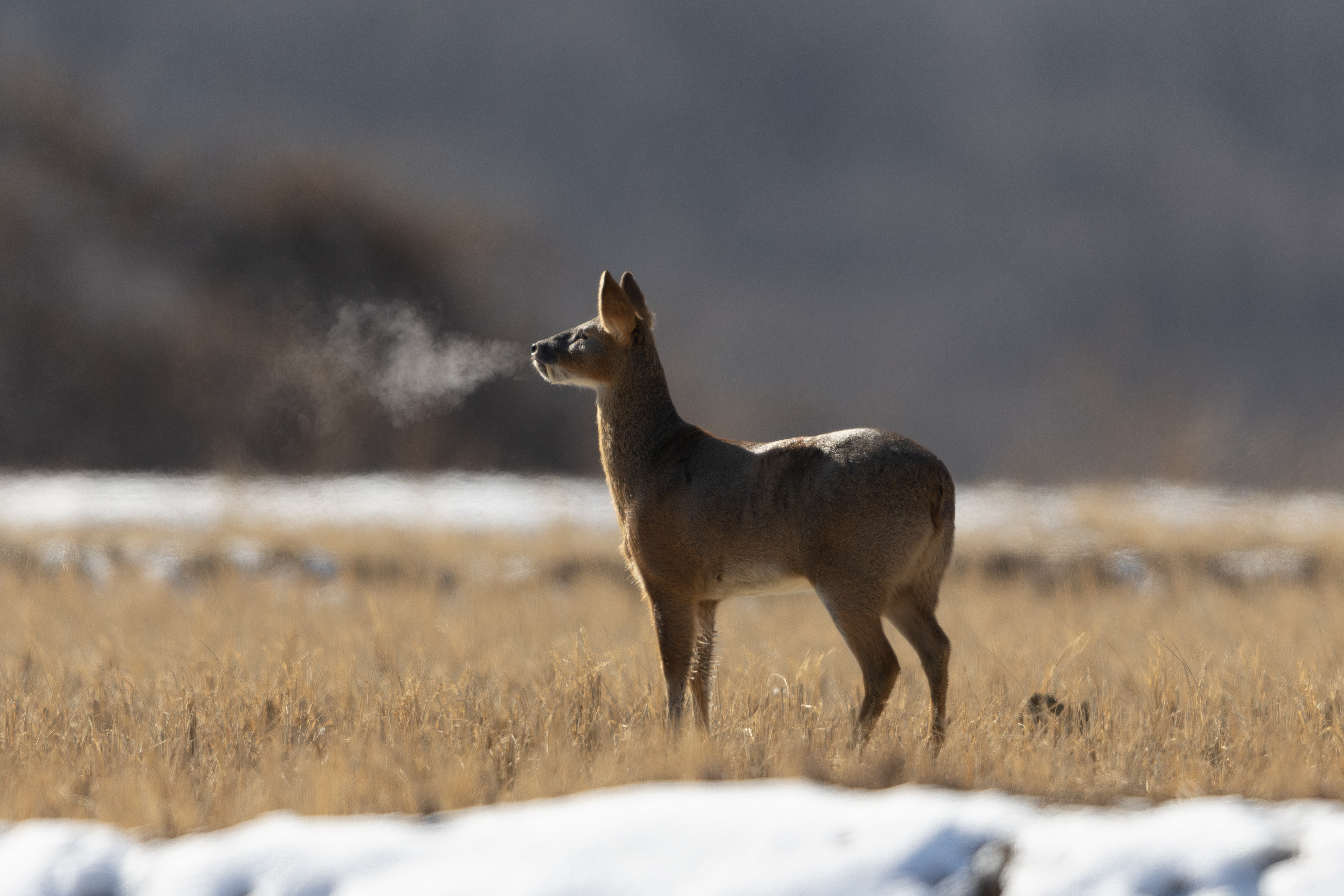 흰꼬리수리와 두루미, 그리고 고라니의 모습입니다."